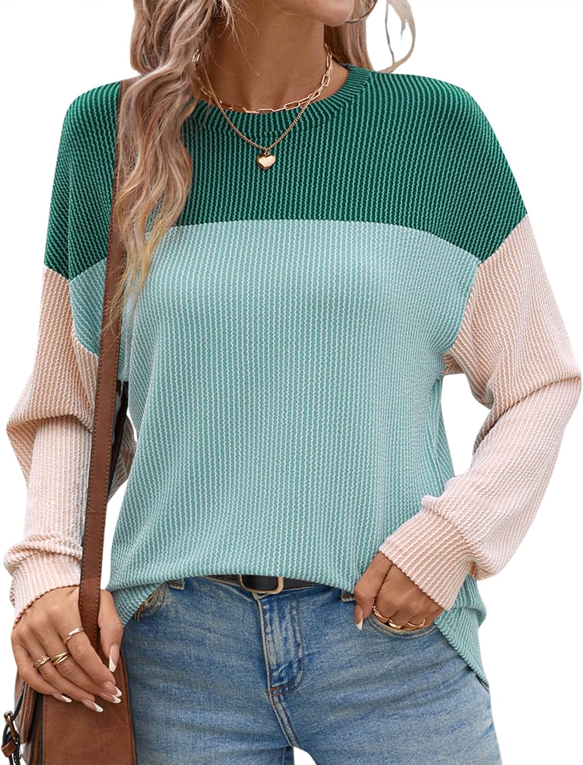 - Features: Classic crewneck, color block design, loose fit, drop shoulder, striped knit, hip length tunic, suitable for spring, fall, winter.